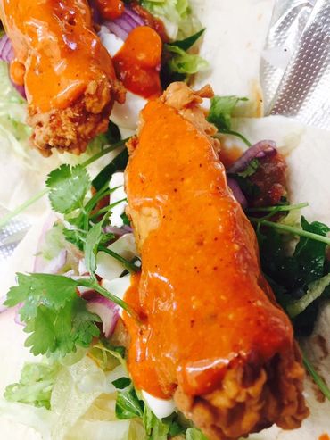 Marinated Grilled Chicken Breast, Habanero Buffalo Sauce, Garlic Lemon Sauce
