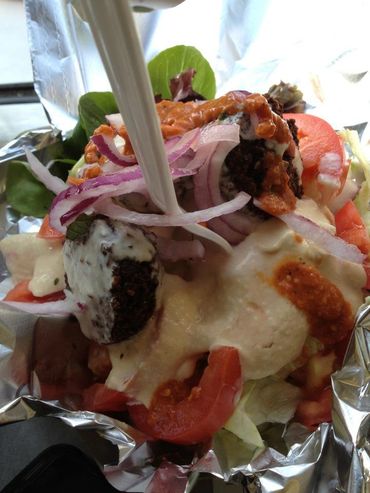 Fresh Ground Falafel, Veggies, Tahini Lemon Sauce